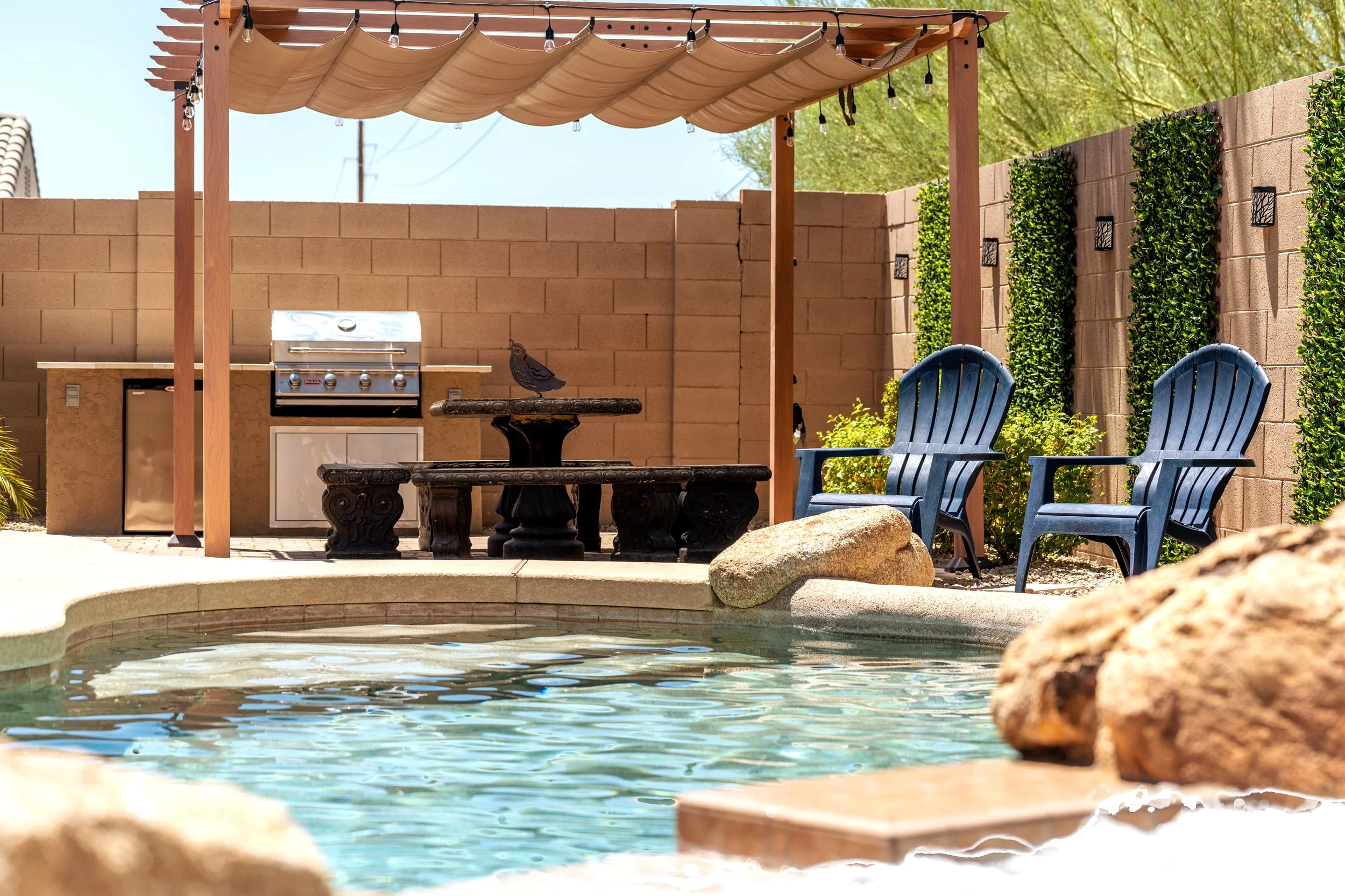 Back Patio Instructions - Ensure pool, patio and pergola lighting are off & close all umbrellas. Place the patio shade in the up (closed) position.
