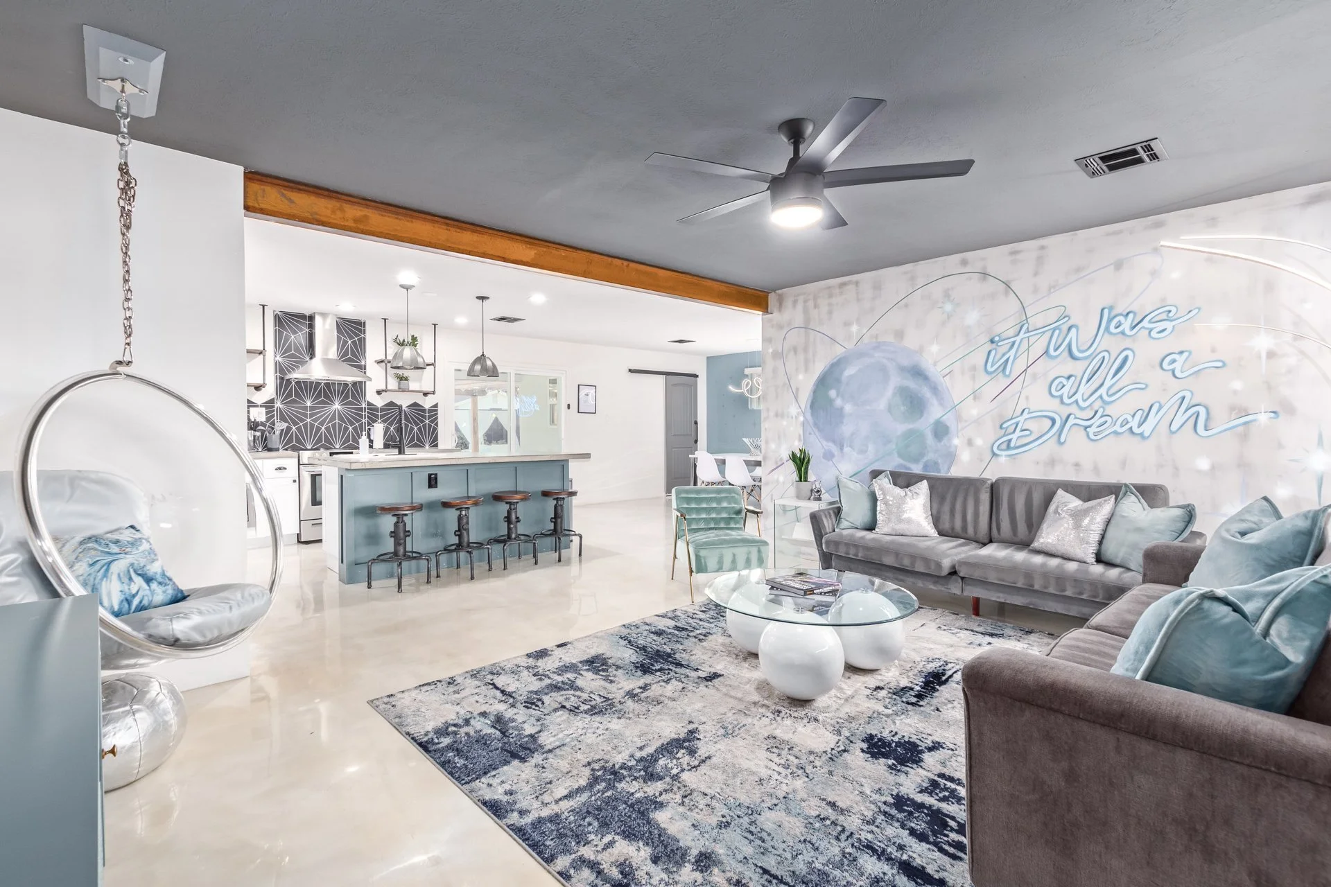 Kitchen: Fully stocked with everything you need to cook at home for a night in. Please use plastic cups when drinking outside near the pool. Pots/pans are in bottom cabinet to the right of the stove. The silverware drawer is to the left of the stove.