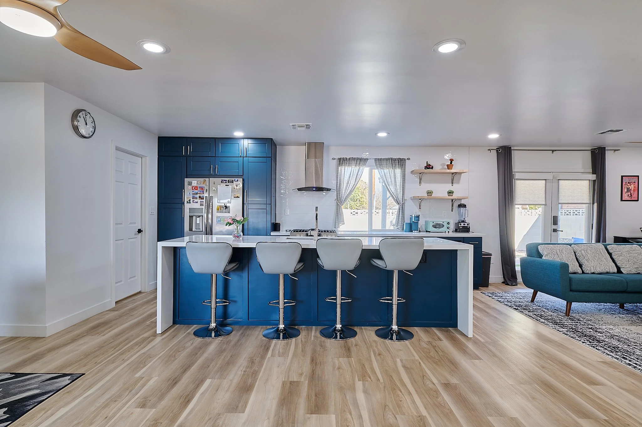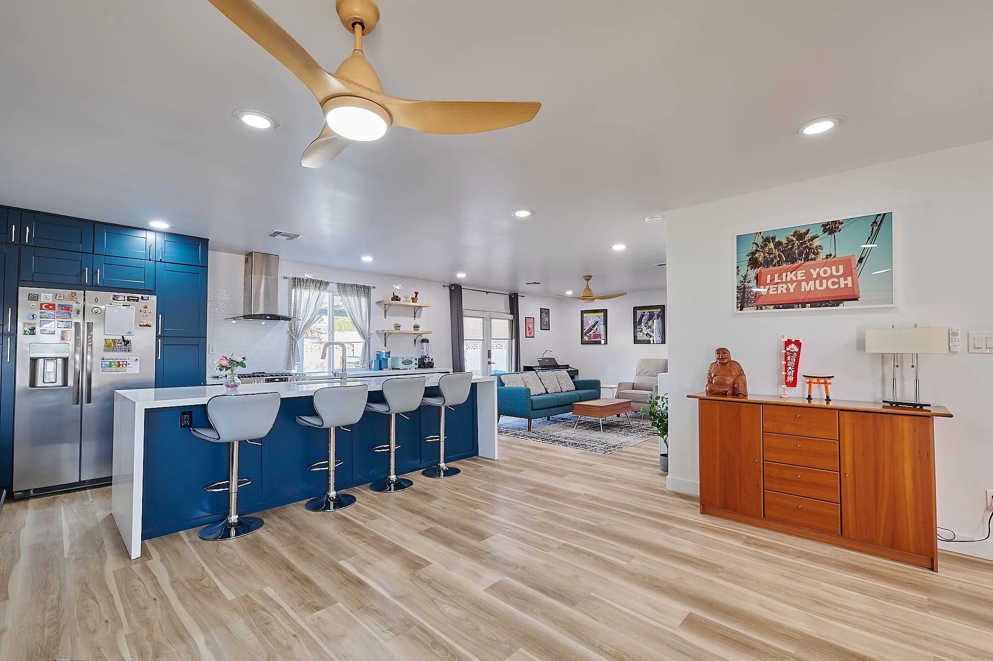 Alexa - You can turn on the light with Alexa: The rooms are: game room, Living room, Kitchen, Hallway, Entry way, Bedroom & bedroom lights (only for main bedroom). For example you can say: “Alexa turn on the kitchen”.
